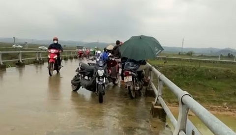 Người dân địa phương phát hiện chiếc xe máy chở hàng cùng đôi dép để lại trên cầu Quán Hàu (Quảng Bình), nghi có người nhảy xuống sông tự tử.