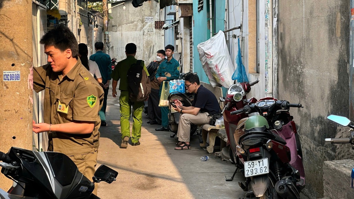 Công an TP Hồ Chí Minh phối hợp với Công an phường Đông Hưng Thuận phong tỏa hiện trường điều tra nguyên nhân vụ cháy rạng sáng 5/2 tại căn nhà 2 tầng trong hẻm nhỏ trên đường Tô Ký khiến 3 mẹ con tử vong…