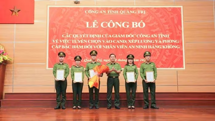 29 nhân viên an ninh hàng không tại sân bay Đồng Hới được tuyển chọn vào lực lượng Công an và được xếp lương, phong cấp bậc hàm theo quy định.