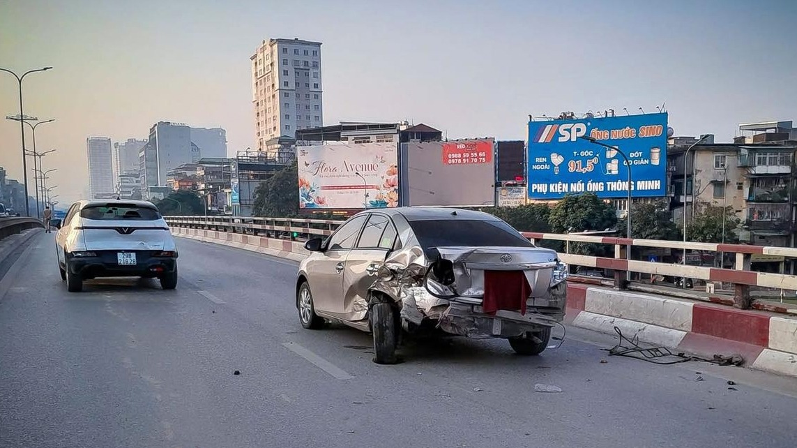 Sau va chạm, xe ô tô 29A-853.XX tiếp tục đâm dồn vào xe ô tô Toyota Vios BKS 20A-239.XX do ông Nguyễn Văn Điệp (SN 1979, Kinh Môn, Hải Phòng) điều khiển, khiến xe này xô dồn lên xe ô tô VF5 BKS 29B-218.XX do anh Nguyễn Văn Minh (SN 1994, Nghĩa Hành, Quảng Ngãi) điều khiển, cùng lưu thông theo hướng trên. |
