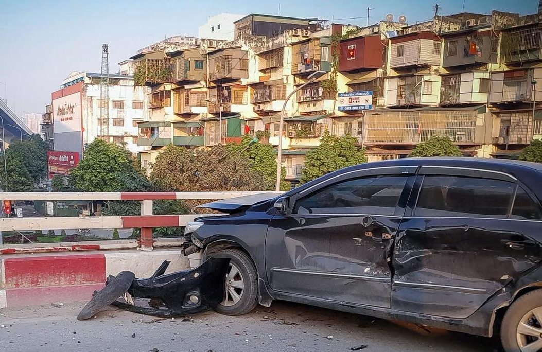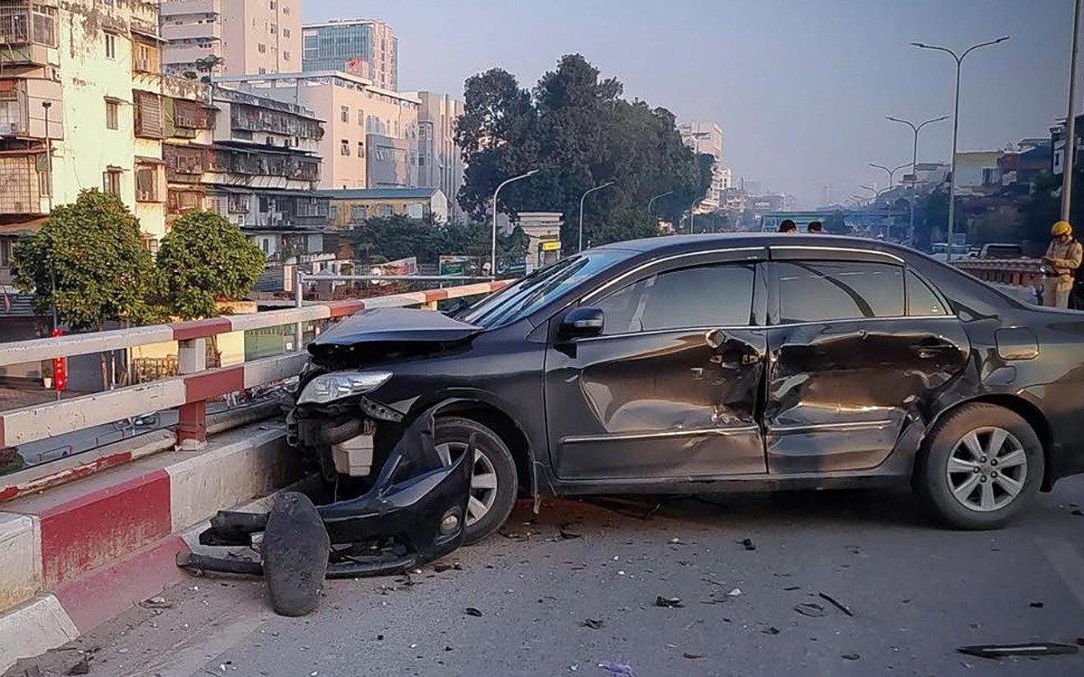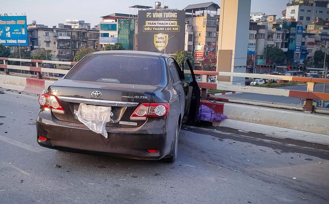 Thời điểm trên, xe ô tô con 5 chỗ Toyota Altis màu đen, BKS 29A-853.XX do chị Phan Thị Thủy (SN 1960, trú tại phường Bắc Từ Liêm, Hà Nội) điều khiển, lưu thông trên cầu vượt Vọng theo hướng từ phố Phương Mai đi Nguyễn An Ninh. |
