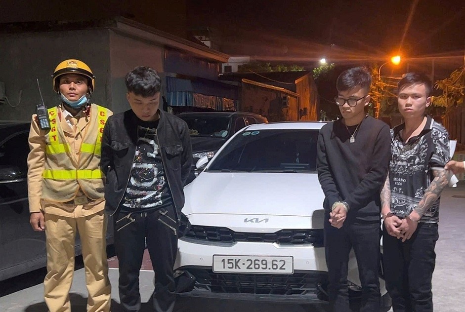 Tổ địa bàn Kiến An đã nhanh chóng truy đuổi, khống chế và dừng được phương tiện. Lái xe là Lê Hồng Duy, sinh năm 2005, trú tại Đồng Tử 4, Phù Liễn, Hải Phòng và 2 người ngồi trên xe.