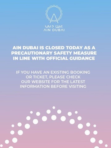 Ban quản lý xác nhận Ain Dubai tạm ngừng phục vụ khách từ ngày 2/3 để tránh rủi ro và ảnh hưởng từ chiến sự. Du khách có vé đã đặt được khuyến cáo kiểm tra cập nhật trực tiếp trước khi tới.