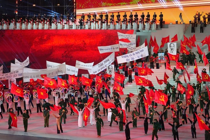 Chương trình dàn dựng công phu, hoành tráng mừng thành công của Đại hội Đảng XIV - Ảnh: VTV |