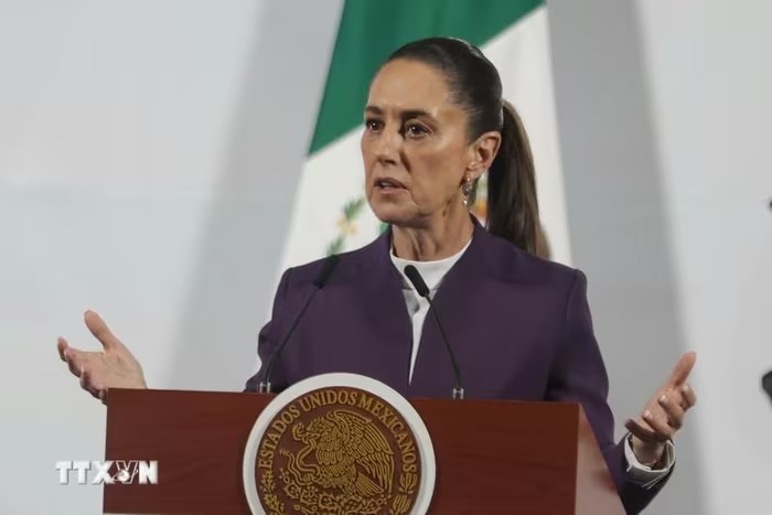Tổng thống Mexico Claudia Sheinbaum phát biểu trong cuộc họp báo ở Mexico City. (Ảnh: THX/TTXVN) |