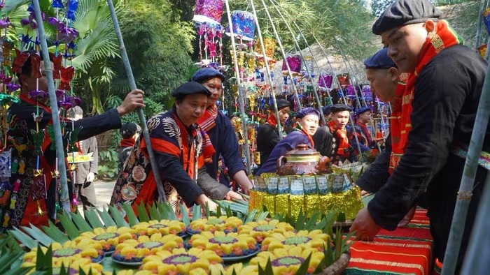 Ẩm thực ngày Tết cũng là điểm nhấn khó quên. Người dân làng Thái Hải vẫn lưu giữ hơn 100 món ăn truyền thống của người Tày, mang đậm hương vị núi rừng. Trên mâm cơm xuân, những món như khâu nhục, thịt trâu nướng, cá chép om bỗng rượu, xôi trám, xôi ngũ sắc hay các loại rau rừng dân dã không chỉ ngon miệng mà còn kể câu chuyện về nếp sống gắn bó với thiên nhiên của đồng bào nơi đây. |
