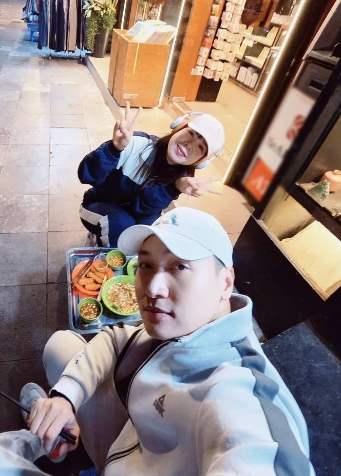 Diễn viên Mạnh Trường vừa chia sẻ khoảnh khắc đời thường bên vợ. Cả hai đạp xe dạo phố, đi ăn đêm, tận hưởng không gian riêng tư sau thời gian làm việc, chăm sóc các con. Ảnh: FB Mạnh Trường. |
