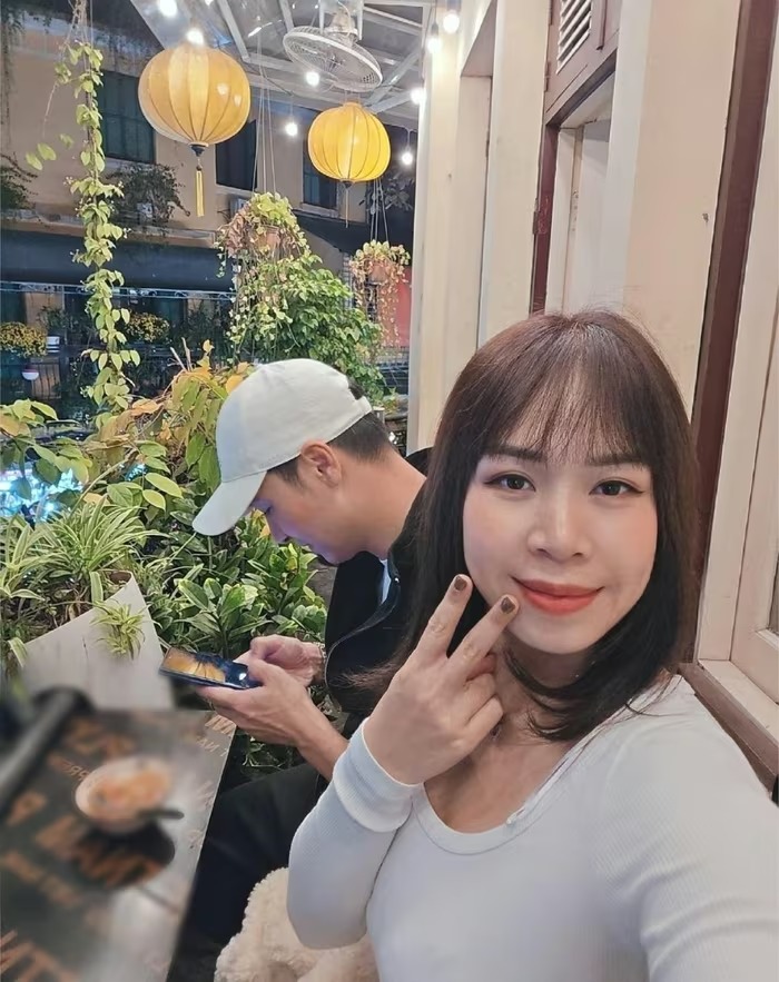 Vợ Mạnh Trường sở hữu gương mặt hài hòa, làn da sáng, nụ cười hiền, toát lên vẻ phúc hậu của người phụ nữ của gia đình. Ảnh: FB Phương Phạm. |