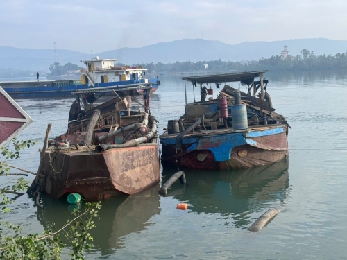 Lực lượng Công an phát hiện, xử lý hai thuyền khai thác cát trái phép trên sông Gianh với khối lượng khoảng 11 m³ |