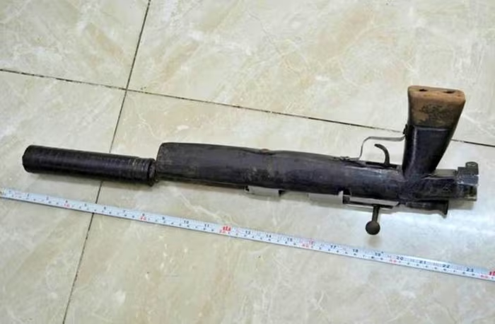 Khẩu súng tự chế mà Đạo dùng để gây án. |