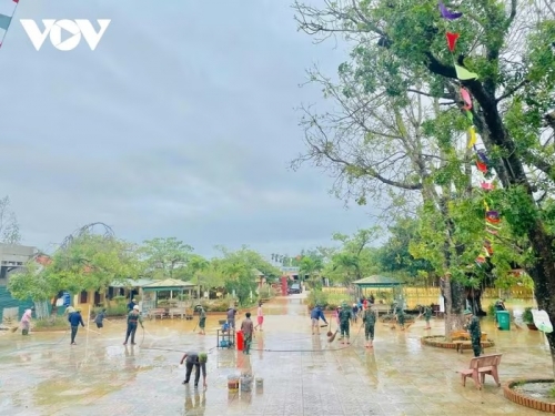 Lực lượng Quân đội, Công an hỗ trợ các địa phương ở tỉnh Quảng Trị vệ sinh trụ sở, trường học, trạm y tế, chuẩn bị các điều kiện đón học sinh trở lại trường.