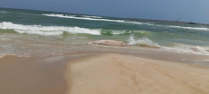Trước đó, vào chiều ngày 8-2, người dân phát hiện tại khu vực phía Nam bãi tắm Mỹ Thủy có một xác cá lớn trôi dạt vào bờ. Ngay sau khi nhận tin báo, xã Mỹ Thủy đã có mặt tại hiện trường để kiểm tra, xác minh.