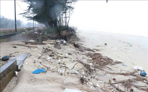 Ngoài ra, sóng biển lớn hàng ngày đánh mạnh vào bờ, khiến lượng lớn rác thải trôi dạt và nằm lại trên các bãi biển gây mất cảnh quan và nguy cơ ô nhiễm môi trường. Các loại rác thải chất đống ở các bãi biển gồm thùng xốp; rễ, gốc và cành cây; túi ni lông và nhiều loại khó phân hủy khác.