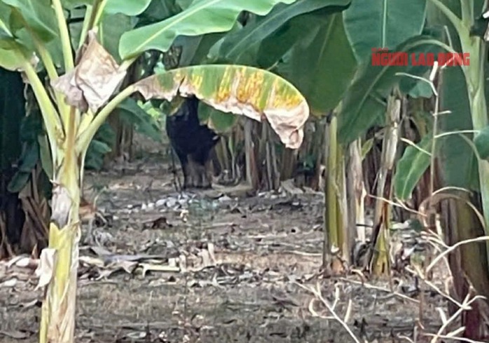 Sau khi húc người, con trâu này chạy vào các khu vườn của người dân gần đó. Ảnh: Chiến Trung |